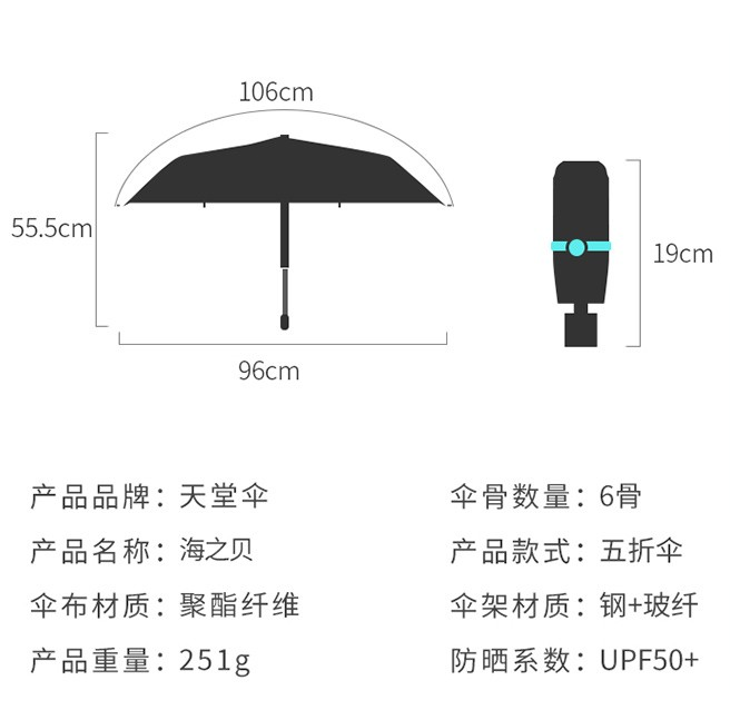 商品名称:天堂伞五折6骨手动开折单人晴雨伞(奶酪色)51116E海之贝