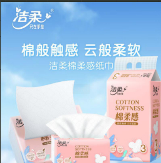 商品名称:洁柔-抽纸-100抽3层3包/提压花软抽-DR238